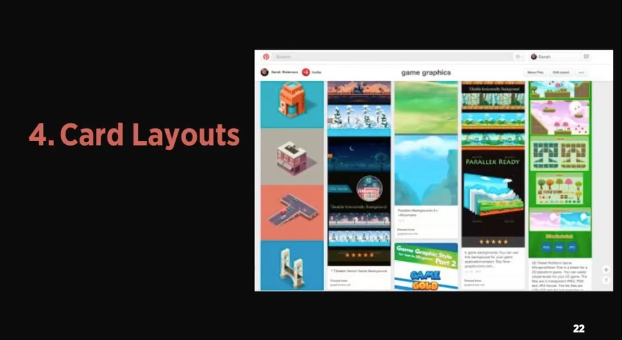 Card layouts: Presents as little as possible information and is easy to read. Only has a brief amount of text.